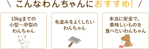 全犬種対応ですが、とくに15kgまでの小型犬~中型犬(室内飼育犬)が食べやすい設計になっています。